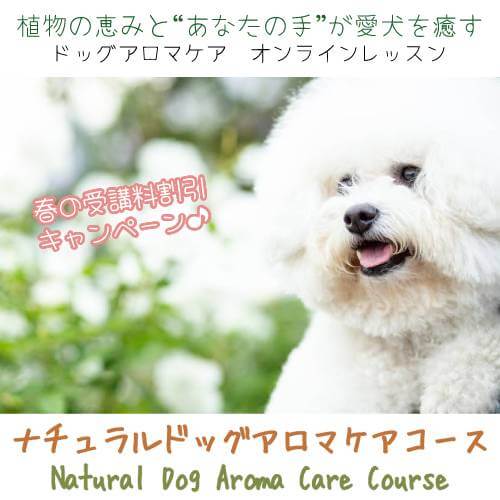 「ナチュラルドッグアロマケアコース」にて、春の受講料割引キャンペーンを開始します。